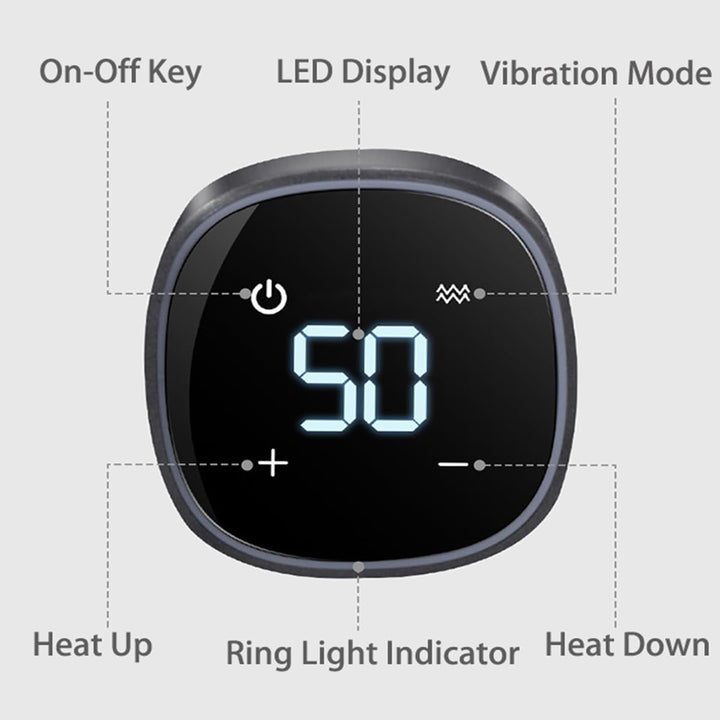 Rejuvaknee Advanced Knee Relief Built-In Graphene Heating Sheet To Promote Blood Circulation And Relieve Arthritis Pain. Magnetic Controller With Led Touch Screen To Control Each Function Individually.Resizable To Fit Most Users.Great For Knees, Shoulders And Elbows.30-Minute Timer, Automatically Stops After 30 Minutes The Heated Knee Massager Has3 Heating Levels:Low - Temperature Range 113℉/45℃ To 131℉/55℃.Medium - Temperature Range 132.8℉/56℃ To 149℉/65℃.High - Temperature Range 150.8℉/66℃ To 167℉/75℃3 Vibration Modes:Providing Great Relax And Comfort For Your Knee, Elbow And Shoulder. It Boosts Circulation, Further Relieves Cramps. Package Includes:1 Pcs * Advanced Knee Relief